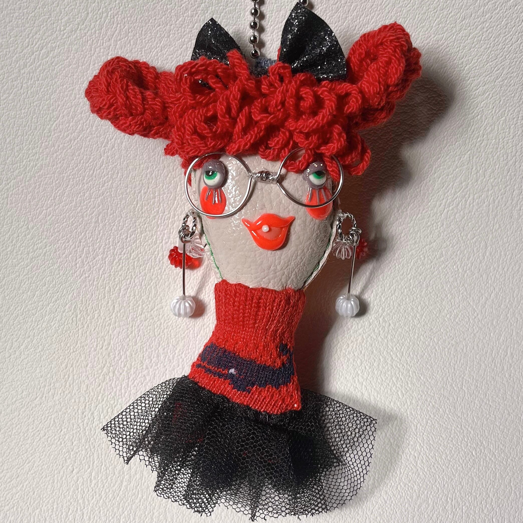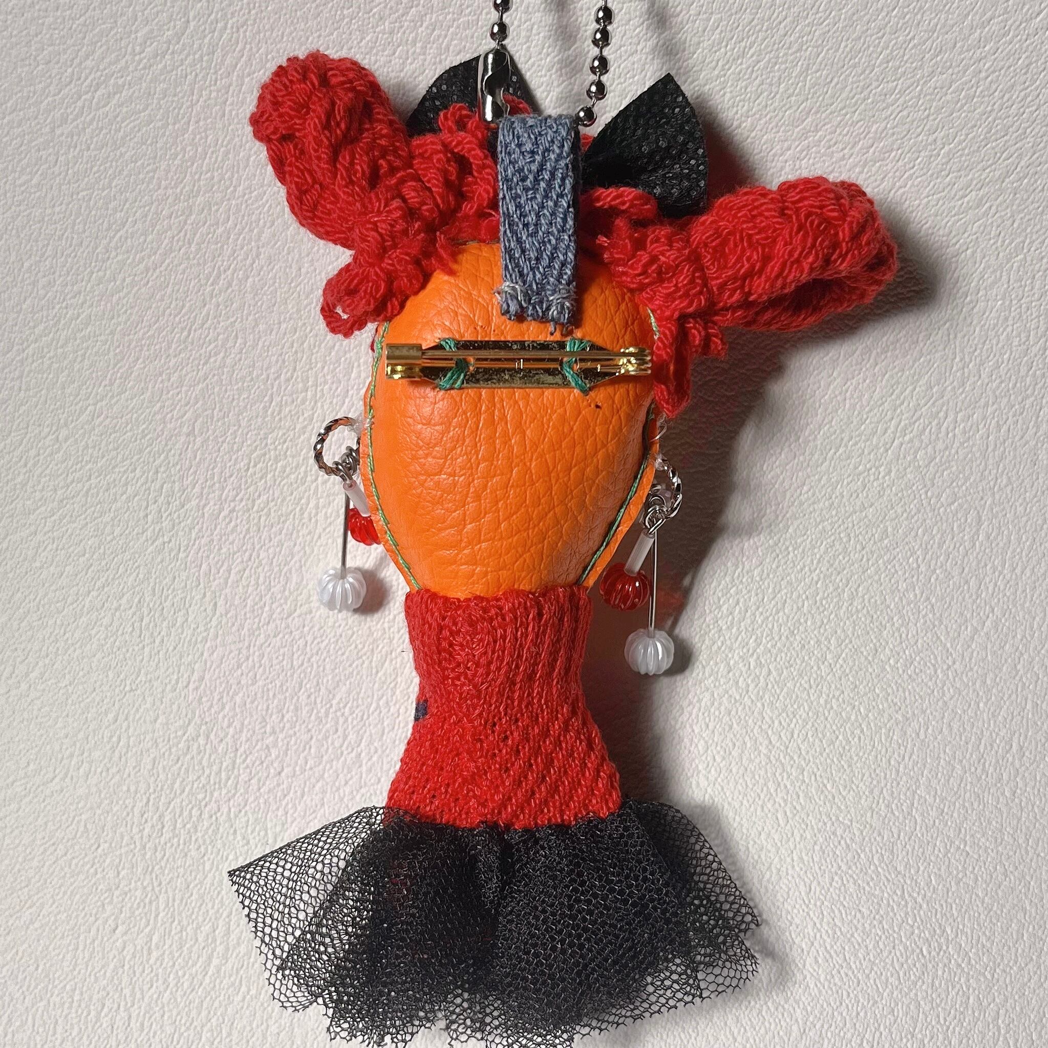 合皮に綿を詰めて、お顔は樹脂粘土で造形。