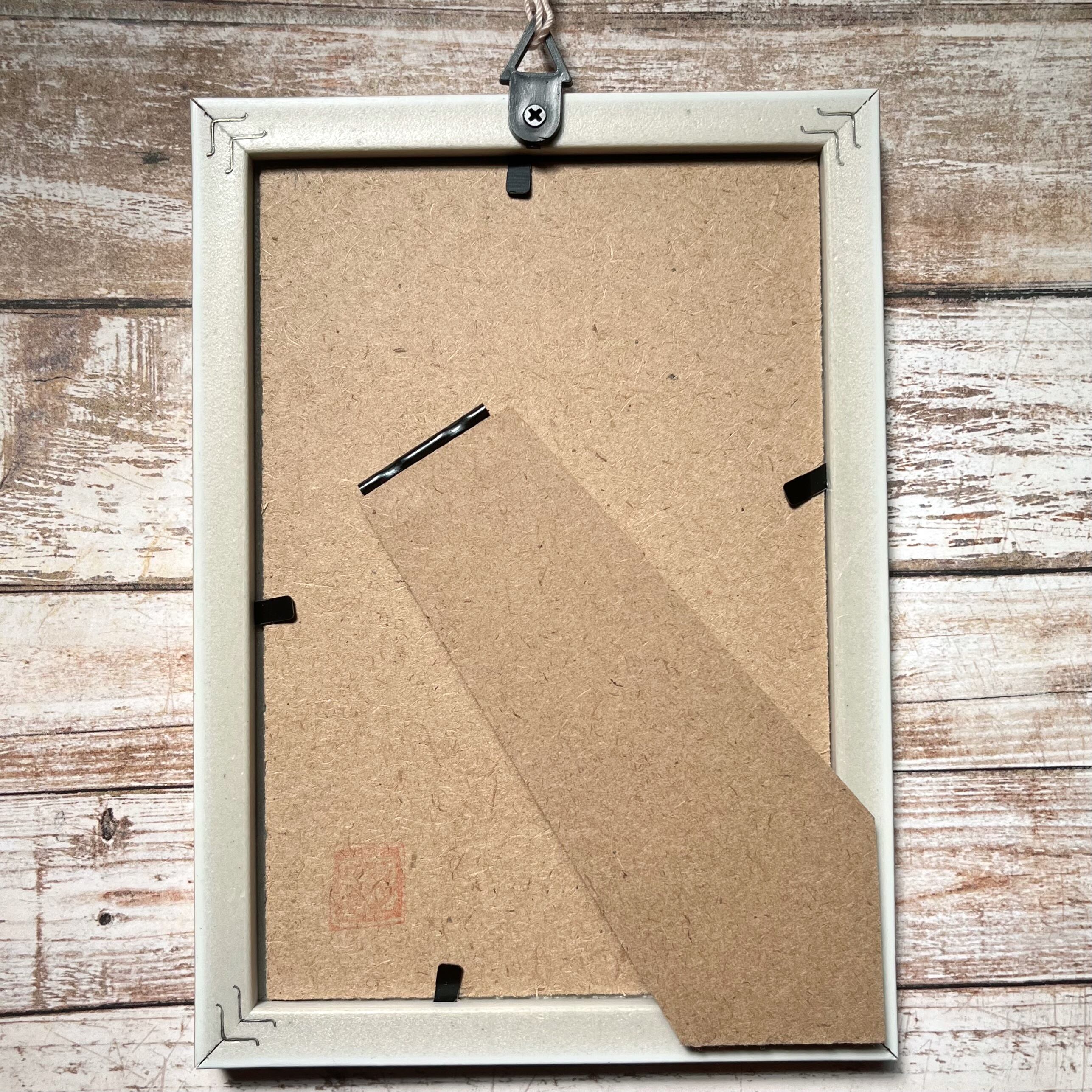 背景やフレーム部分はアクリル絵の具で彩色し、その上からコート剤を塗ってます。