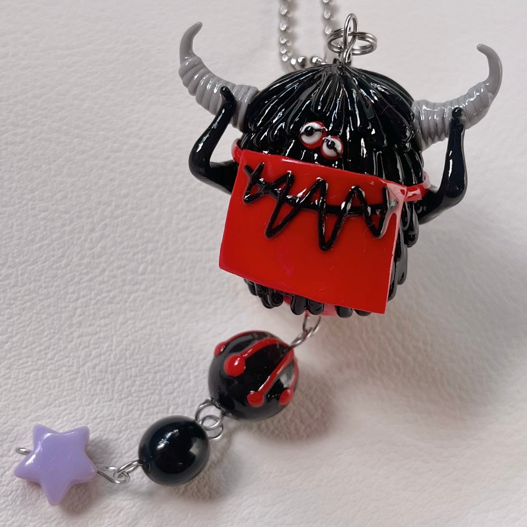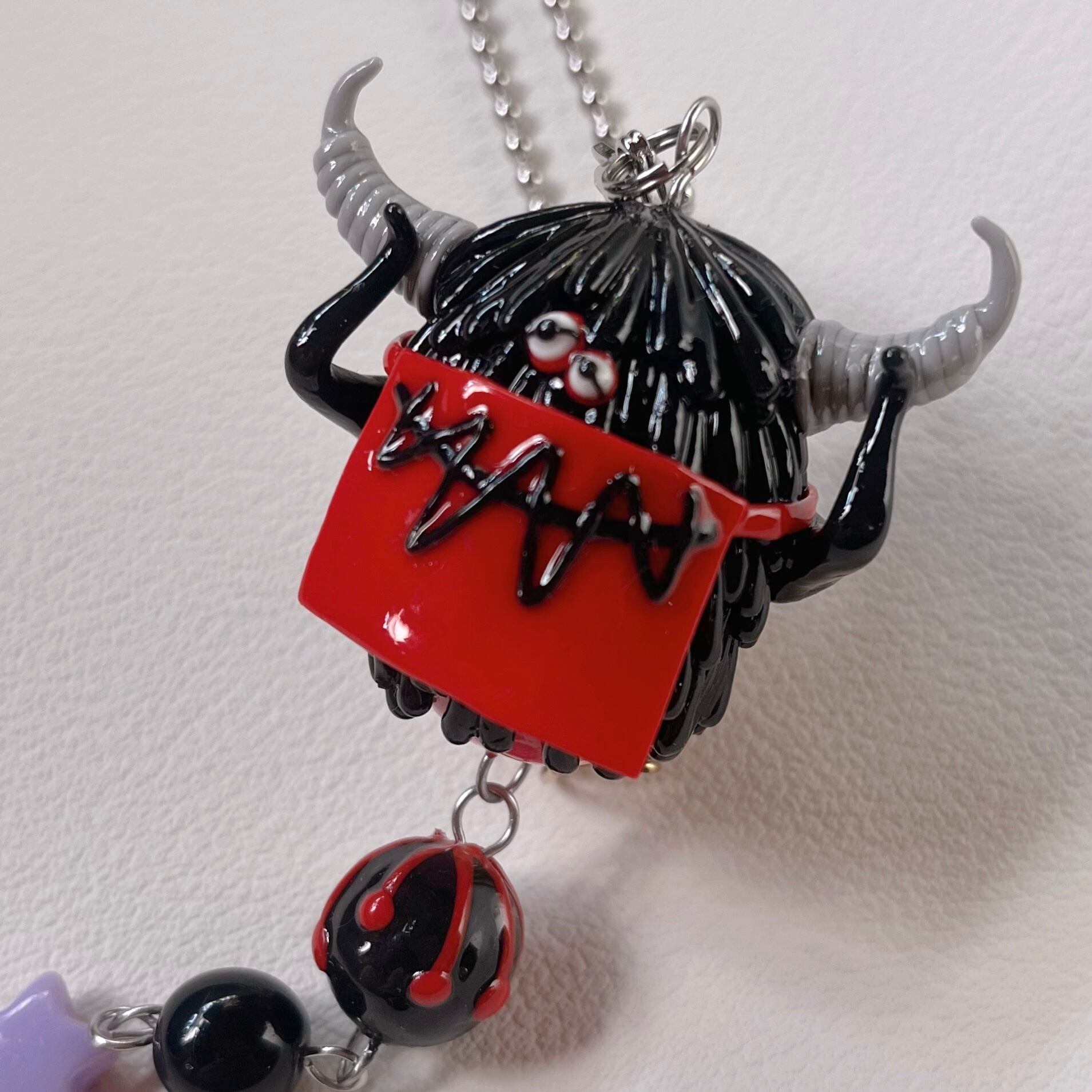 1番上の少し大きい玉だけ、アクリルビーズの表面に樹脂粘土を造形しています。
