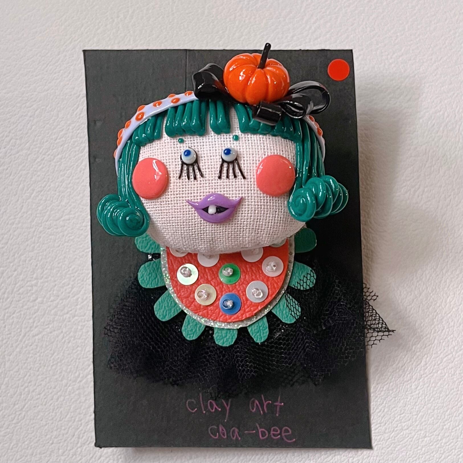 その表面に樹脂粘土を施したブローチ。